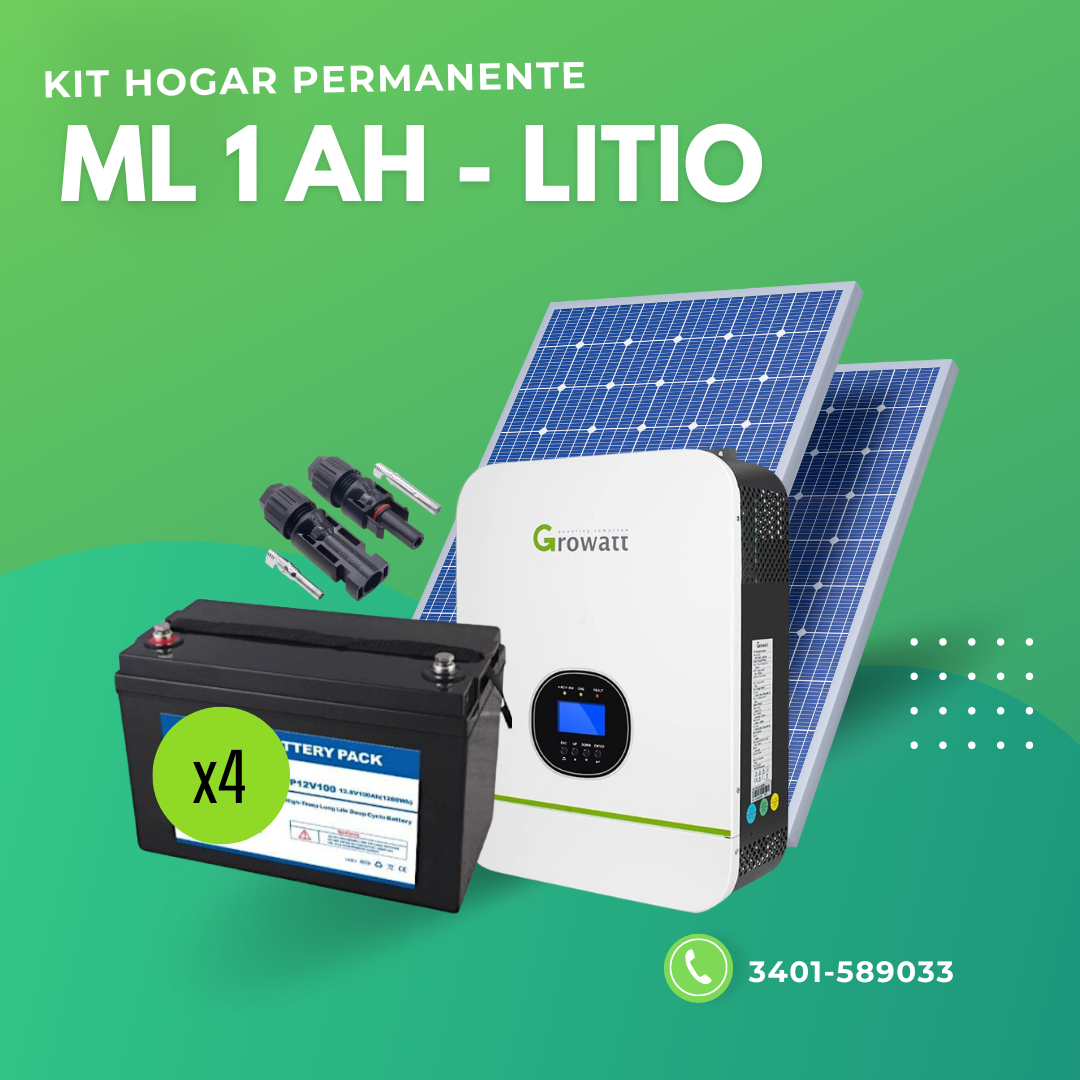 El generador fotovoltaico ML 1 AH es un kit solar pre-armado diseñado para abastecer el consumo de artefactos eléctricos en lugares donde no hay red eléctrica, donde la red eléctrica presenta reiterados cortes o donde se pretende economizar energía (sin inyección a red)