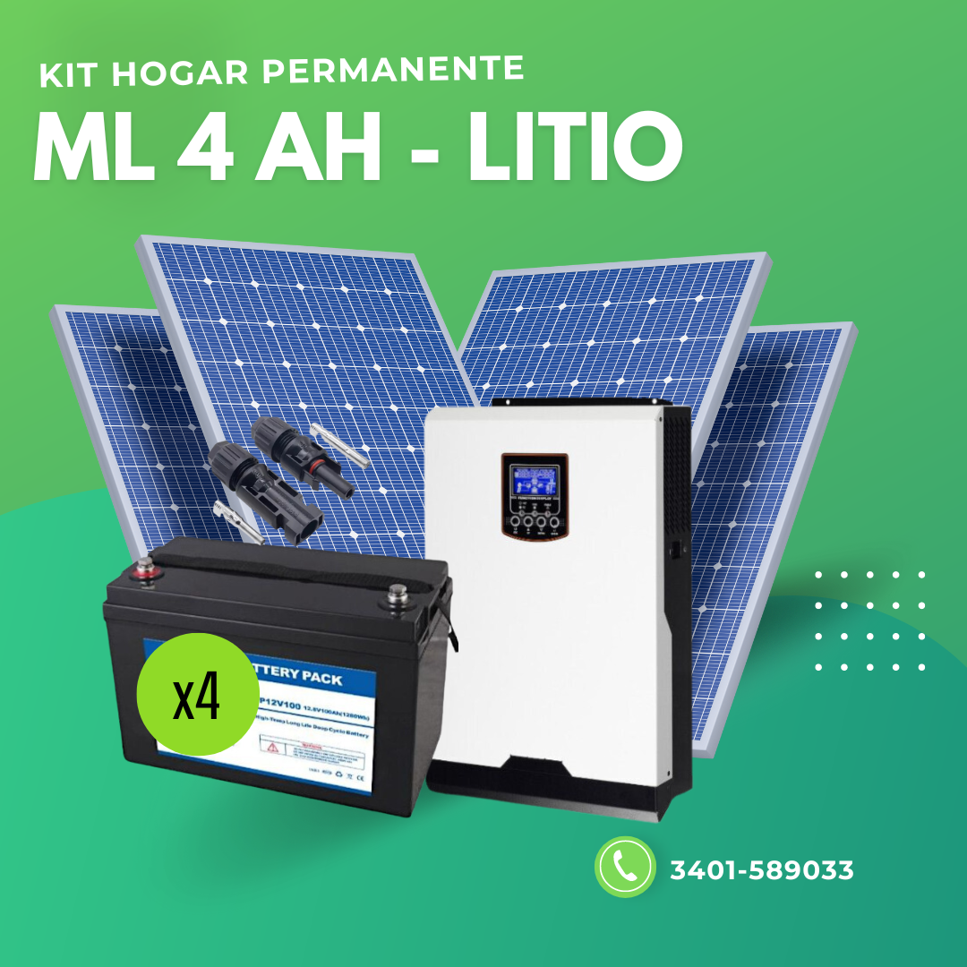 El generador fotovoltaico ML 4 AH es un kit solar pre-armado diseñado para abastecer el consumo de artefactos eléctricos en lugares donde no hay red eléctrica, donde la red eléctrica presenta reiterados cortes o donde se pretende economizar energía (sin inyección a red)